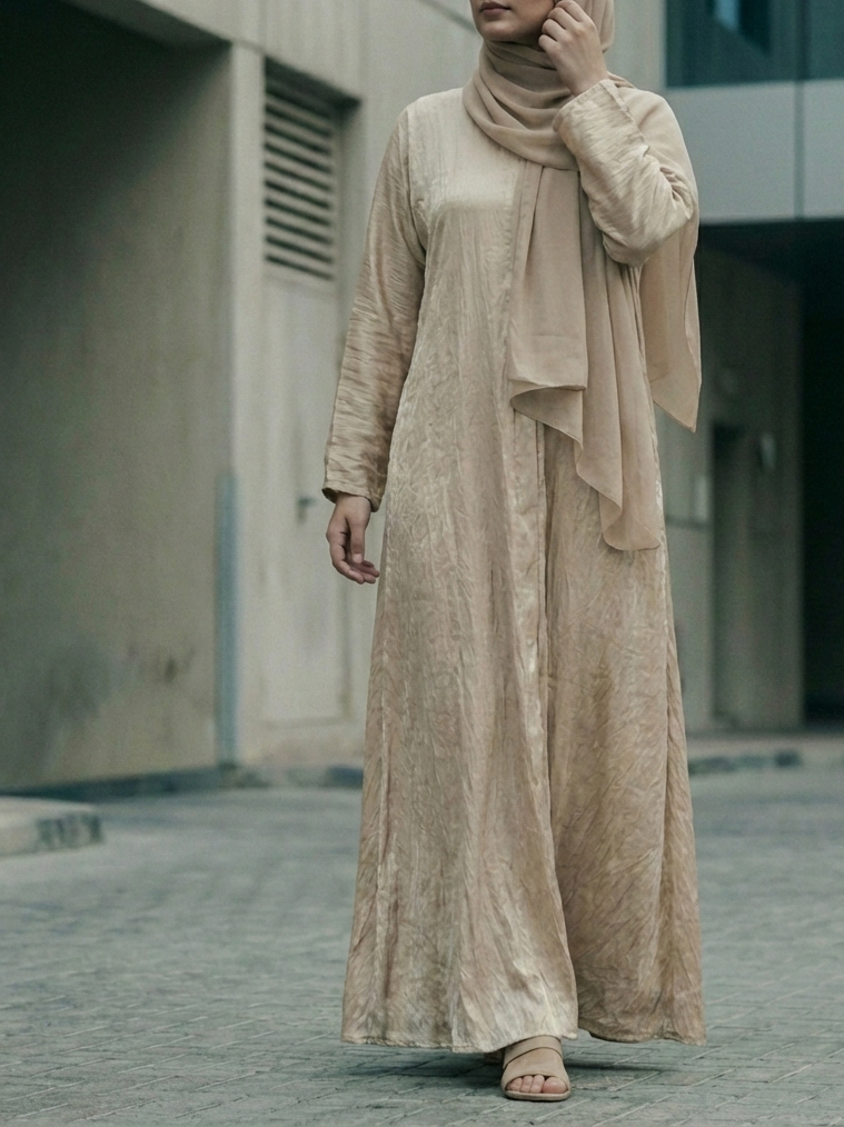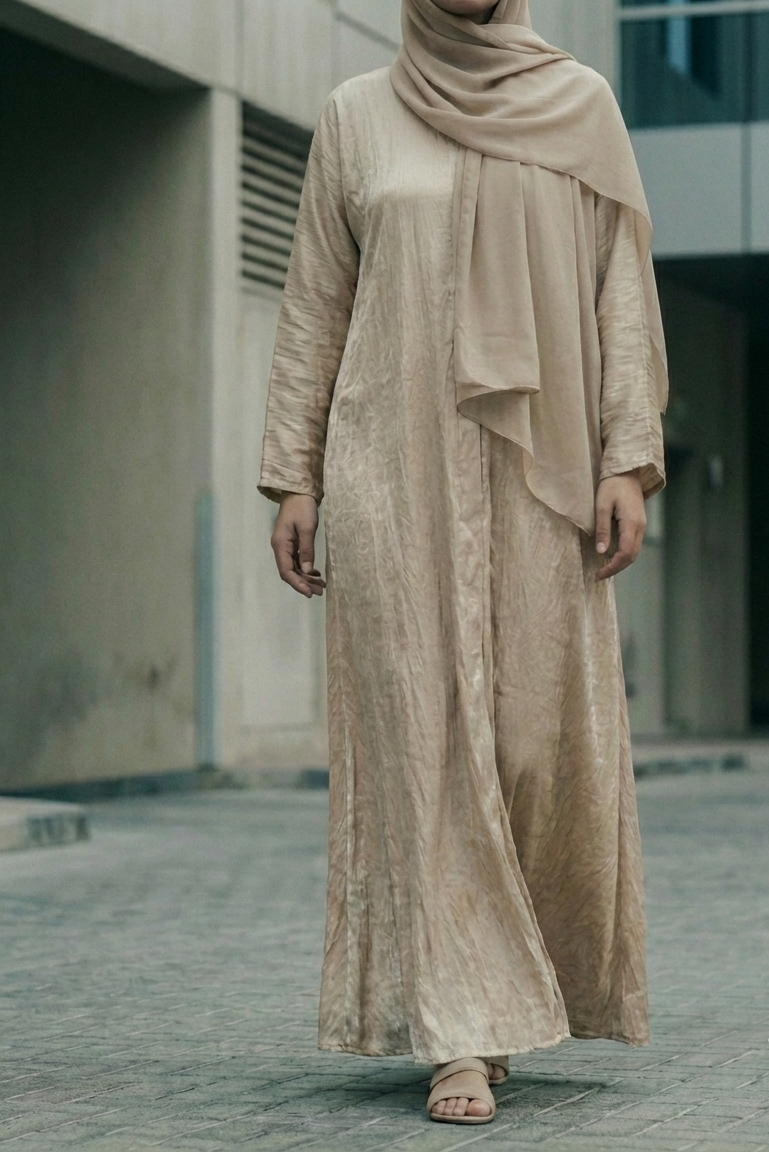 An everyday piece in a warm, muted gold featuring a subtle metallic sheen. Made from a soft linen-cotton blend, it is built for daily ease and flexibility. The straight-cut silhouette moves fluidly, holds its shape through regular wear, and requires minimal care. It is a straightforward, functional design that fits naturally into any wardrobe, at any age.